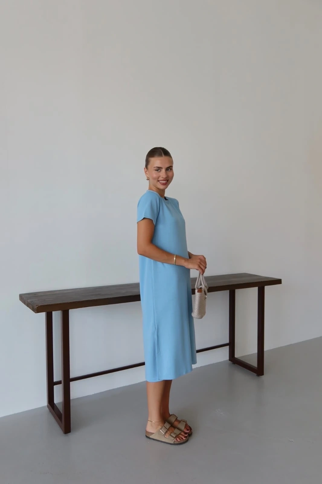 Modal Yırtmaçlı Elbise Mavi PT, şıklık ve rahatlığı bir arada sunan bir seçenektir.