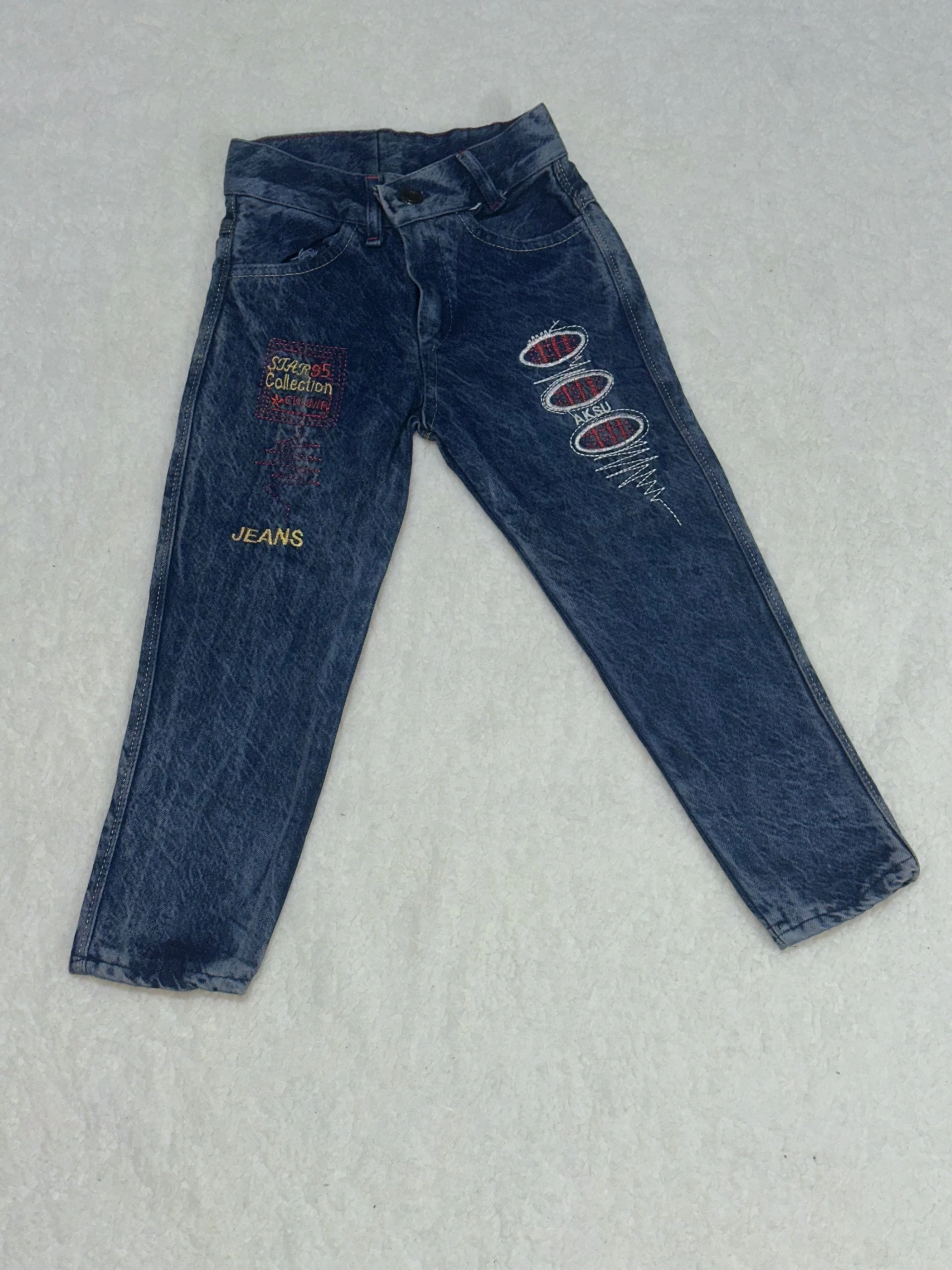 Bu sevimli mavi jeans pantolon, 4-6 yaş arası kız çocuklar için özel olarak tasarlanmıştır. Pantolonun üzerindeki zarif nakış işlemeleri, ona şık ve eğlenceli bir hava katmaktadır. %100 pamuk kumaştan üretilmiş olan bu pantolon, hem konforlu hem de dayanıklıdır.
